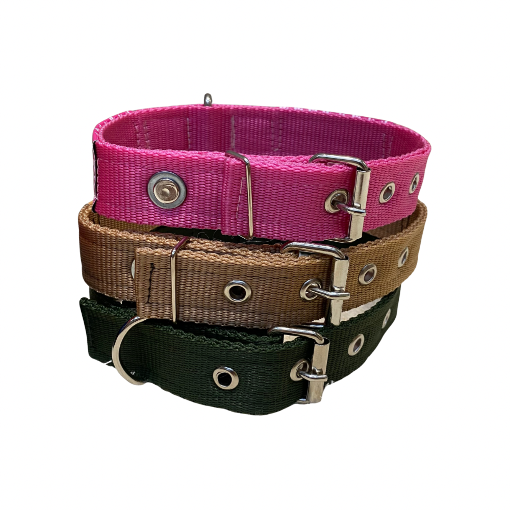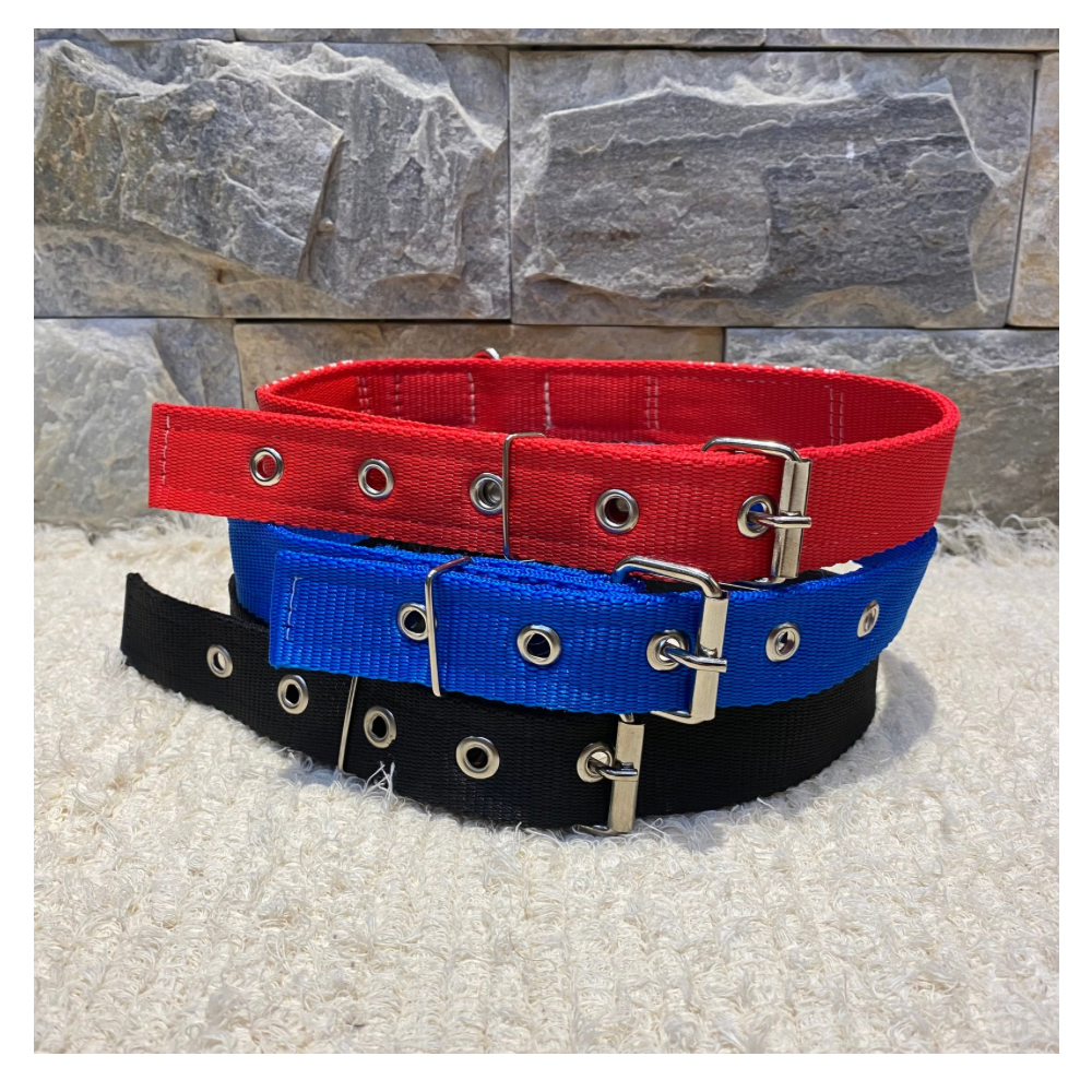 Desenvolvida para cães de porte médio e grande, esta coleira é fabricada com nylon duplo reforçado de alta resistência, garantindo segurança e durabilidade no dia a dia.